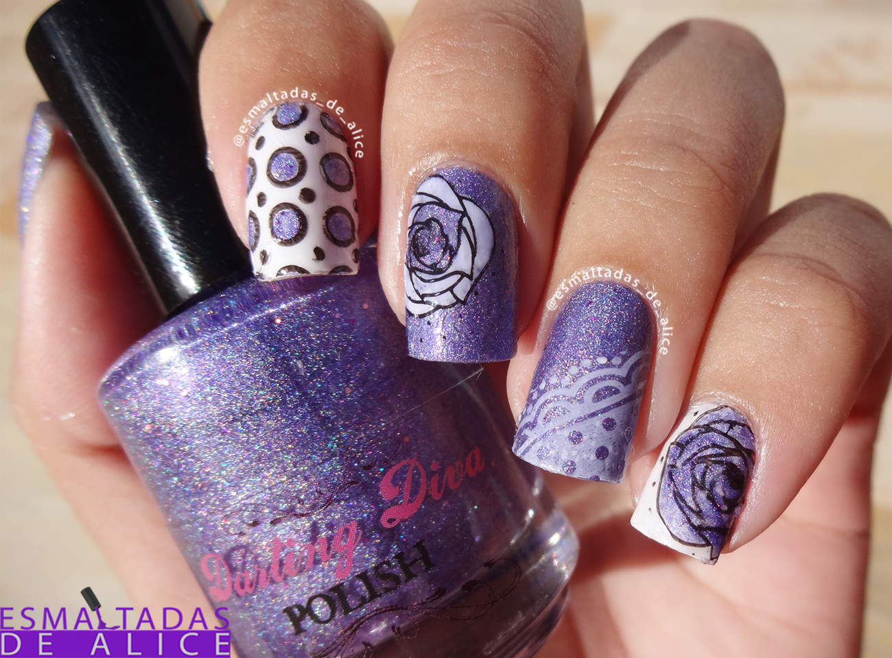 And to wrap up this week, I leave the spotlight to my dear Alice from the blog Esmaltadas de Alice, who prepared this gorgeous mani to show us. Enjoy.